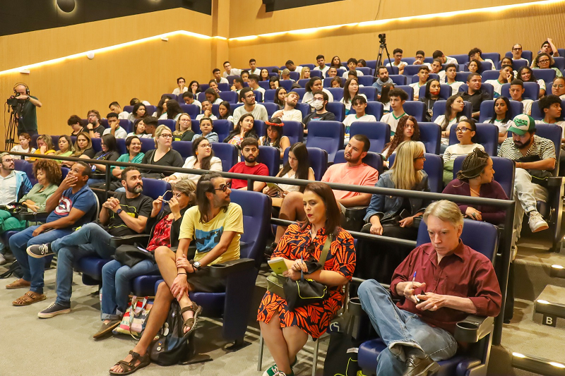 Na reta final no bacharelado em Design, a futura artista plástica Ester Oliveira comenta que participou da abertura e veio novamente para o segundo dia de Festival. “É o primeiro evento que eu venho no Sesc e a estrutura, o acolhimento das pessoas, a organização do Farpa, tudo está incrível. Fico feliz pela valorização da arte de maneira geral e eu amei que são temas bem interessantes. O debate sobre a fanfic é super atual, assim como os demais temas que são extremamente pertinentes. O mais legal de tudo foi a troca com a plateia, onde o próprio público participa ativamente do evento”, destaca.